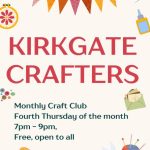 Kirkgate Crafters is our monthly craft club.We meet on the fourth Thursday of the month from 7pm – 9pm. Bring along a project you’re working on. Join us for craft and chat, share skills and to meet others. Open to all, all crafts welcome. The bar will be open for drinks and snacks.Sentimental Value (15)